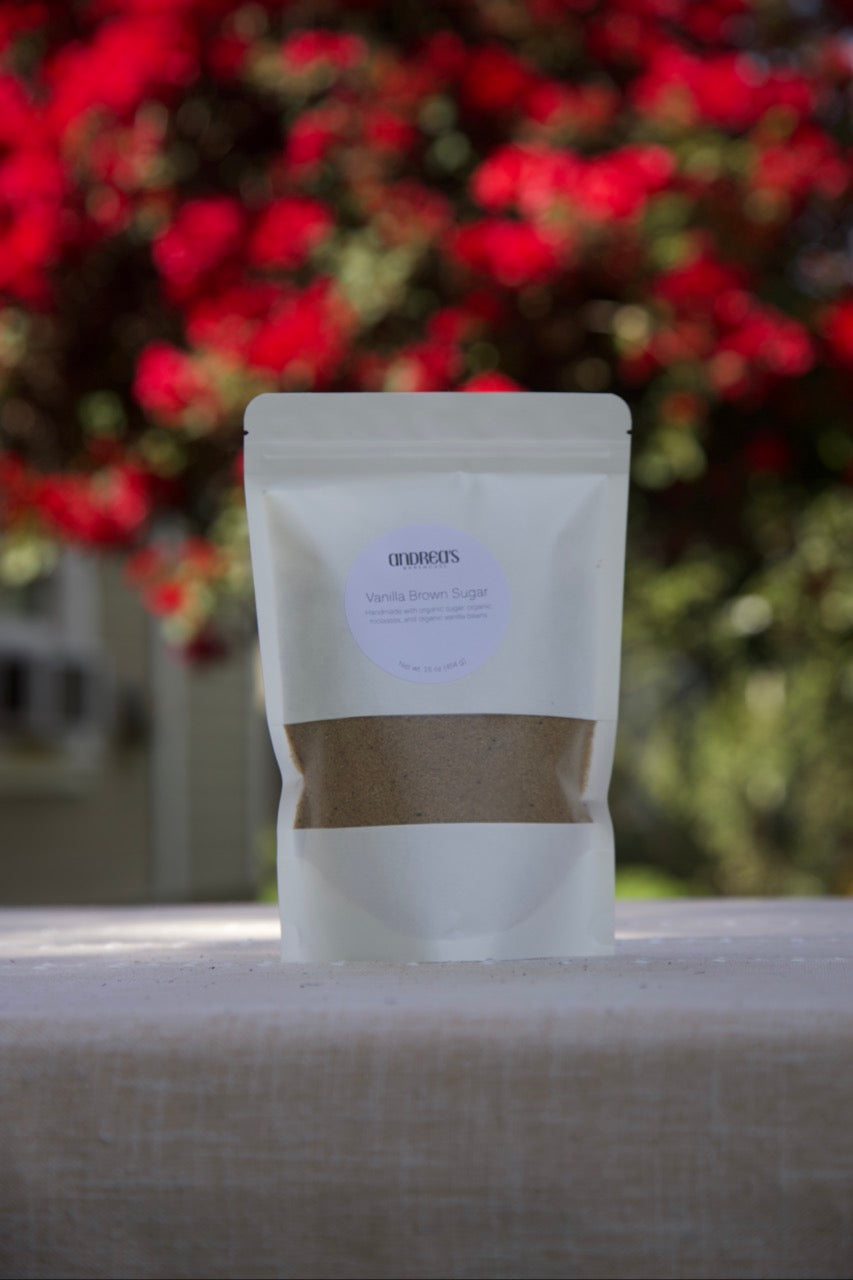 This bundle comes with both of our handmade brown sugars. Our vanilla brown sugar is made with organic cane sugar, organic molasses, and organic vanilla beans. It can be used in any recipe that calls for brown sugar and is perfect for adding a warm, sweet flavor to your favorite recipes. Our espresso brown sugar is made with organic cane sugar, organic molasses, and organic espresso beans. It is good for any recipe that calls for brown sugar—especially chocolate recipes! Andrea’s pro-tip: add a few tablespoons to your next chili recipe.